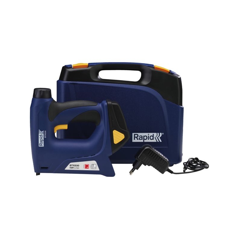 Pour textile, cuir, petite menuiserie, étiquetage, tissu d’ameublement, tapisserie. Utilise des agrafes n°53 de 6 à 14 mm et des pointes n°8 de 15 mm. Livrée dans une mallette avec une batterie déjà chargée pour deux heures et demi d’utilisation.