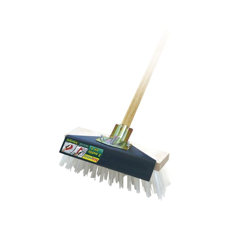 2 outils en 1 balai de cantonnier et grattoir en retournant l'outil. Avec manche bois. Largeur : 320 mm