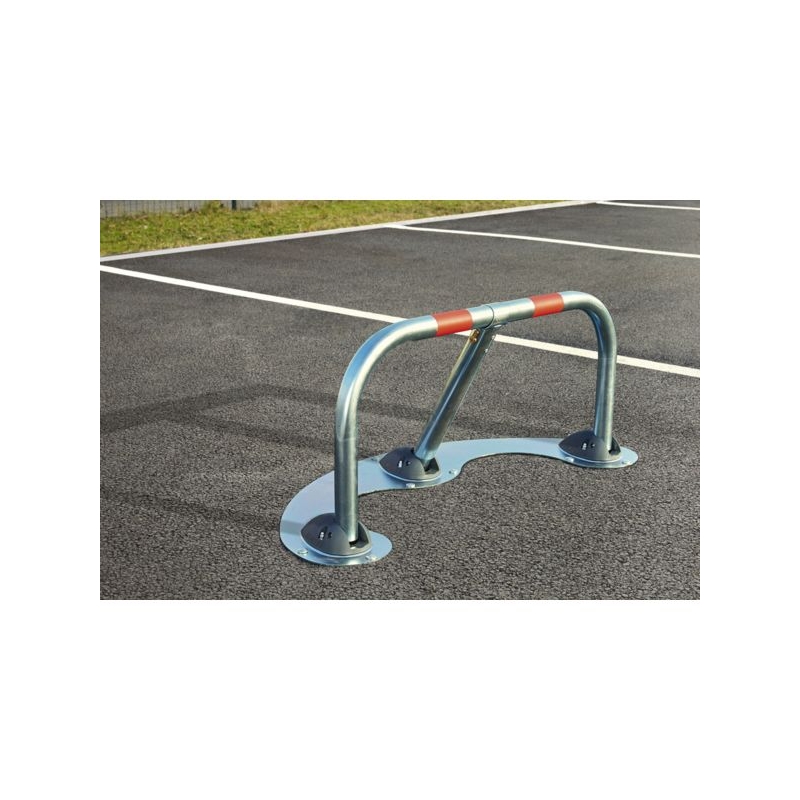 Spécial macadam , se pose sans réaliser de bloc béton. Tube Ø 50 et 45 mm, épaisseur de tôle 3 mm, en acier zingué antirouille, embases en résine ultra résistantes à l’écrasement. Verrouillage automatique, cylindre européen avec clés identiques ou passe. Sans perçage ni vissage. Se fixe avec des clous spéciaux, ou se colle si le support est en béton. Fixations incluses. Poids : 11 kg Dimensions platine : 102 x 46 cm