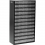 En métal laqué noir, tiroirs incassables en polypropylène transparent avec poignée, porte-étiquettes, étiquettes et séparateurs. À suspendre ou à poser. Livré avec fixations murales.