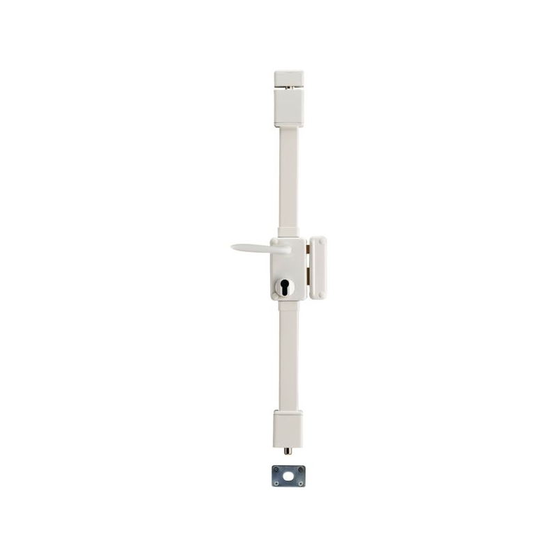 Acier embouti 20/10e. Pour porte de 1650 à 2250 mm. Rappel équerre du ½ tour. Pênes haut et bas en acier Ø 16 mm, tringles ajustables. Béquille double fournie pour modèle à fouillot. Livré avec gâche, sans cylindre (pour porte de 45 mm, prévoir cylindre 30 x 65 mm). Existe aussi en blanc, nous consulter. Coffre : 75 x 130 mm Axe : 45 mm Entraxe : 70 mm Fouillot carré : 7 mm Finition : marron Conditionnement : boite