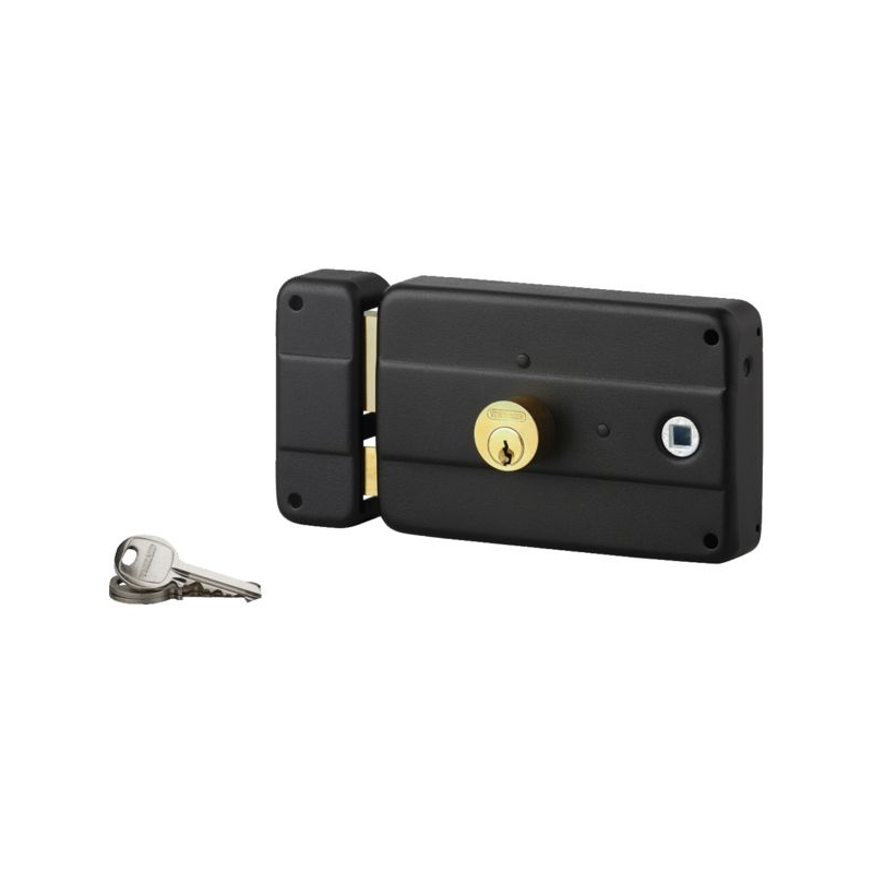 Acier embouti. Pêne et ½ tour en laiton. Mécanisme à 3 tours. Rappel du ½ tour par la clé. Double cylindre (diamètre 25 mm) laiton 5 goupilles. Entrée de cylindre et de fouillot en acier. Livré avec gâche et 3 clés laiton nickelé. Dimensions coffre : 140 x 90 mm Longueur : 45 mm Entraxe : 120 mm Fouillot carré : 6 mm Conditionnement : boite