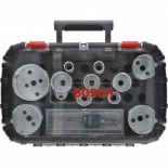 Scie trépan bi-métal, à denture HSS et Cobalt 8%. Profondeur de coupe jusqu'à 44 mm. Composé de : - 1 adaptateur Power Change, - 11 scies trépans Progressor, - 2 forets HSS-G. Emmanchement : Power Change