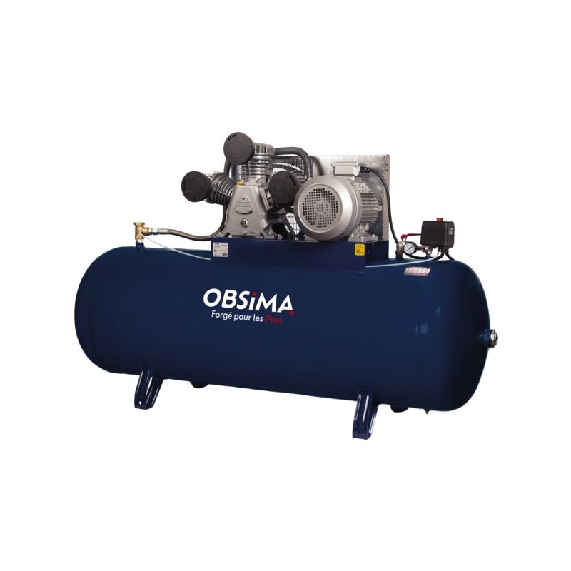 Groupe tricylindre en W fonte. Sortie raccord rapide gros débit. Manomètre 16 bar, contacteur disjoncteur, clapet anti-retour, fléxible inox/téflon haute température, soupape de sécurité CE, robinet de purge. Alimentation : 400 V triphasée Puissance : 10 cv Réservoir : 500 l Débit aspiré : 55 m³/h Débit restitué : 43,4 m³/h Pression maxi. : 10 bar Vitesse moteur : 980 tr/mn Poids : 226 kg Dimensions : 195 x 64 x 125 cm