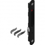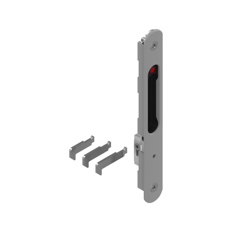 Poignée coquille intérieure à condamnation par curseur pour baie alu. Livrée avec 3 crochets de longueurs différentes. Gâche non fournie. Conforme à la norme EN 13126.19. Hauteur : 198 mm Entraxe de fixation : 164 mm Largeur : 24 mm Conditionnement : boite