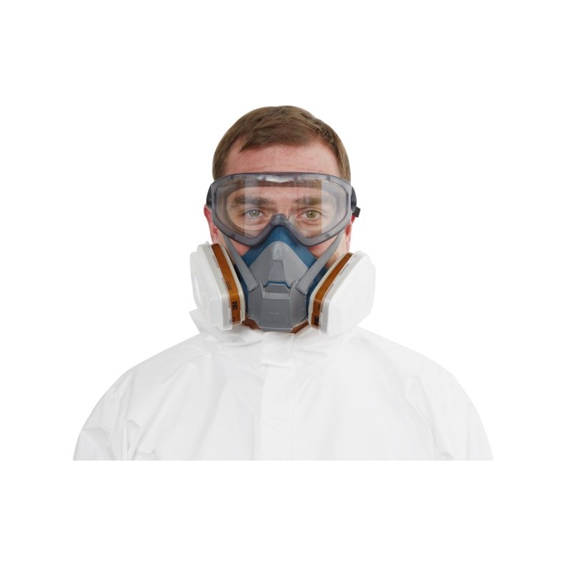 En silicone. Équipé d'une soupape expiratoire centrale. Confortable, léger, entretien facile. À équiper de filtres latéraux fixés par système 'Click' à baïonnette. Harnais ajustable. Mise en place et retrait aisé lors de l'entrée ou de la sortie d'une zone contaminée, grâce au système Quick Latch. Polyvalence d'emploi : filtres antigaz et/ou à particules Taille : M Norme : CE Cat III - EN 140