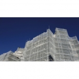 Idéal pour une pose rapide sur échafaudage. Bandes de renfort de chaque côté avec boutonnière tous les 5 cm. Rectangulaire rigide et peu occultant. Poids : 50 gr/m² Dimensions : 3 x 20 m Coloris : vert
