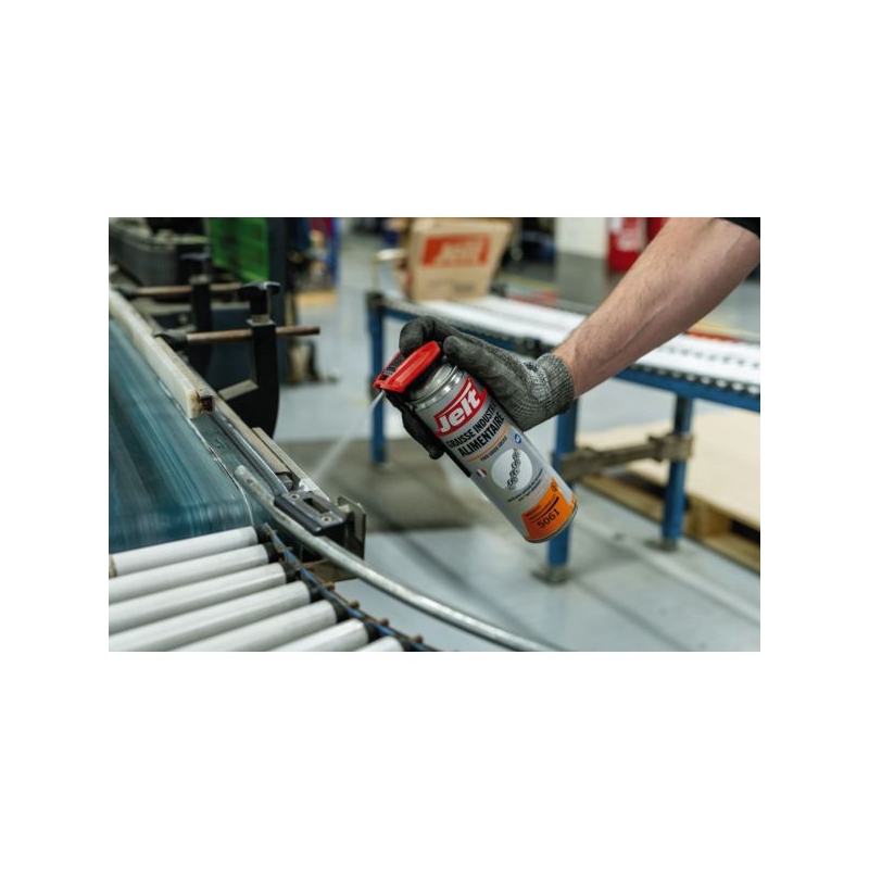 Permet une luibrification légère à moyenne des pièces en mouvement, petits roulements, paliers lisses et engrenages. Destinée au matériel de fabrication de produits comestibles : laiteries, fromageries... Assure une lubrification très longue durée de tous les mécanismes traités. Excellente capacité à supporter les charges. Extrêmement propre, ne tache pas. Spray double position. Plage de températures de service : -10°C à +150°C Aérosol : 500 ml net
