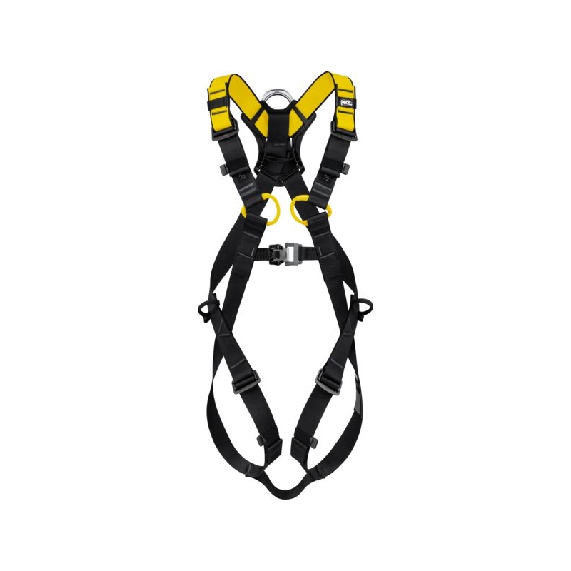 1 point d’attache dorsal, pour connexion du système d’arrêt des chutes. 1 point d’attache sternal, léger et résistant à l'abrasion pour connexion du système d’arrêt des chutes. Boucles autobloquantes sur les bretelles et tours de cuisse pour un réglage simple et rapide. Boucle automatique sternale permettant d'ouvrir et de fermer le harnais simplement et rapidement, sans perte de réglage, même avec des gants. Le système de déverrouillage limite le risque d'ouverture involontaire. Sangles dotées d'un code couleur (jaune/noir) permettant d'identifier rapidement les parties hautes et basses du harnais avant de l'enfiler. 2 portes-matériel et 2 passants pour pochette porte-outils facilitant l'accès aux outils (pochette non fournie). Poids (taille 1) : 900 g Taille : 1 et 2 Norme : CE Cat III - EN 361