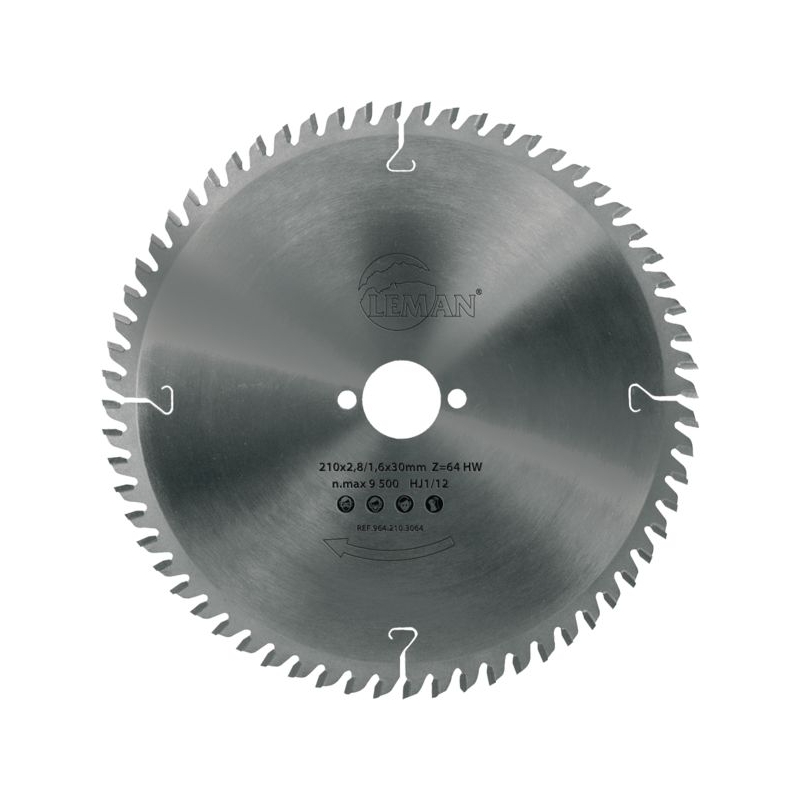 Lame de scie carbure, denture alternée pour le travail du bois. Corps en acier traité et rectifié, tensionné.