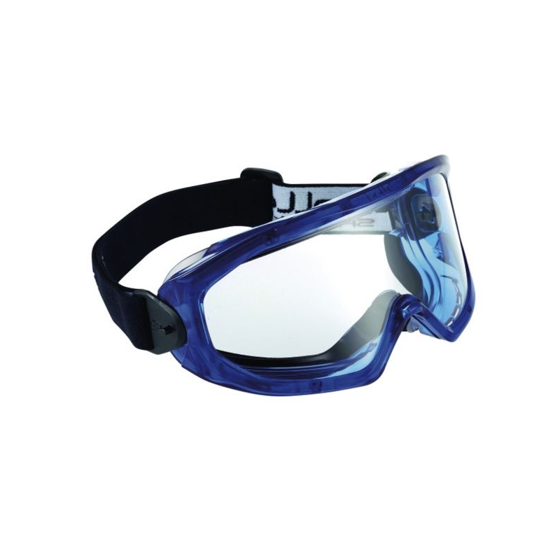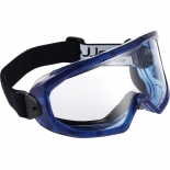 Monture souple en PVC avec goulotte de débordement extérieur pour les liquides. Oculaires en polycarbonate incolores traités antirayures et antibuée. Champ de vision exceptionnel. Permet le port de lunettes correctrices et d'un demi-masque respiratoire. Poids : 113 g Norme : CE Cat II - EN 166
