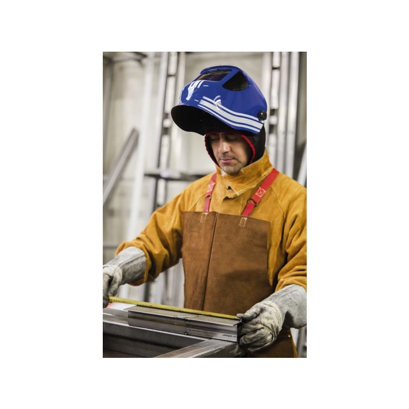 En croûte de cuir souple. Coutures fils Kevlar®. Le maintien du tablier est assuré par un harnais dorsal, facilement ajustable, garantissant un meilleur équilibre et une meilleure répartition du poids. Dimensions : 60 x 90 cm Epaisseur : 1,80 mm Poids : 618 g Taille : unique Norme : CE Cat II