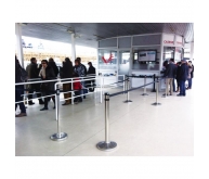 Poteau acier avec base lestée, sangle extensible auto-freinée de 50 mm, tête pouvant recevoir jusqu'à 6 sangles provenant de différente...